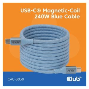 Club3D Kabel magnetický USB-C, 240W PD3.1, 480 Mbps, 2m, modrá