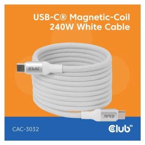 Club3D Kabel magnetický USB-C, 240W PD3.1, 480 Mbps, 2m, bílá