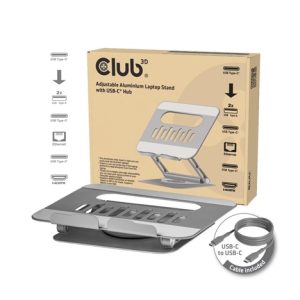 SALEClub3D Nastavitelný hliníkový stojan pro notebook s USB-C hubem na 2xUSB, 1xHDMI, 2xUSB-C, 1xRJ45, 360°, 100W, 4K60Hz
