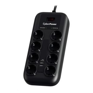 BAZAR – CyberPower Surge Buster™ 8 zásuvek, 2xUSB, 1.8m, German, New – Poškozený obal (Komplet)