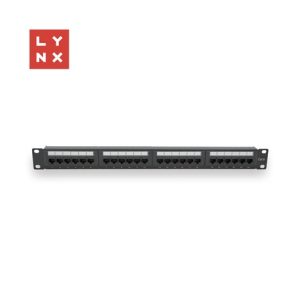 LYNX 19″ patch panel 24-port, UTP Cat5e, 50µ, nestíněný, černý