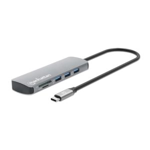 MANHATTAN Dokovací stanice USB-C 7v1, 1xHDMI, 2xUSB-C, 2xUSB, čtečka SD karet, šedá