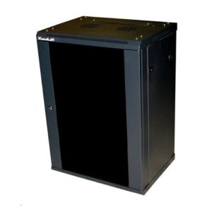 SALEXtendLan 19″ nástěnný rozvaděč 18U 600×450, nosnost 60 kg, skleněné kouřové dveře, svařovaný, černý