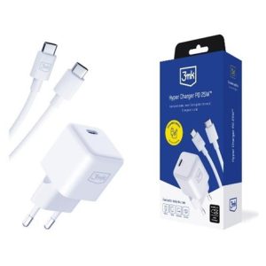 BAZAR – 3mk síťová nabíječka Hyper Charger PD 25W + kabel USB-C – Poškozený obal (Komplet)