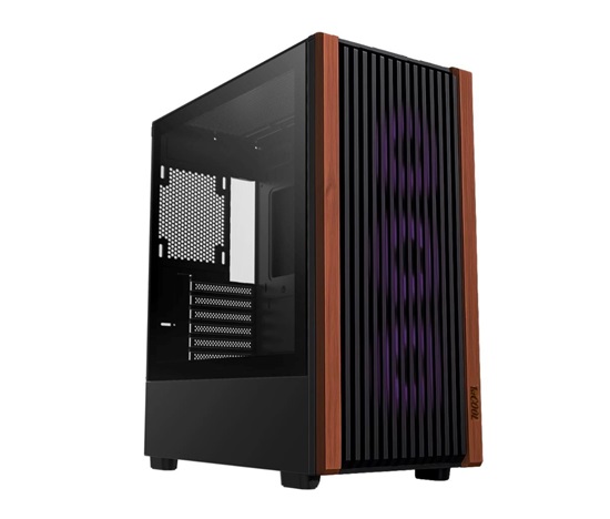 Skříň G6 Noble spojuje moderní technické prvky s elegantním designem. Přední panel s dřevěným dekorem nejen decentně vyniká, ale zároveň umožňuje efektivní proudění vzduchu a jednoduché čištění osazených filtrů. Zvolit můžete z několika variant, od varianty s pevnou kovovou bočnicí a třemi standardnímy ventilátory v příslušenství, až po variantu se setem s ARGB podsvícením ventilátorů, který lze snadno synchronizovat se systémy jako ASUS Aura Sync, MSI Mystic Light, GIGABYTE RGB Fusion či ASRock Polychrome Sync.