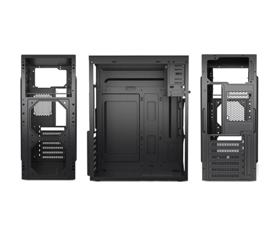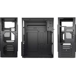 Provedení skříně:Mini Tower / micro ATX; Barva skříně:Černá; Počet pozic 3.5″ (HDD):2; Počet pozic 2.5″ (SSD):2; Bočnice:Plná; Podsvícení:bez podsvícení; Vybavení PC skříně:Přední Audio panel, Přední USB panel