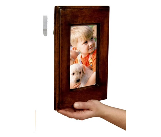 4) Na zadní stranu rámečku připevněte závěsné proužky 3M Command Picture Hanging Strips. Co se týče umísťování proužků a doporučené hmotnosti zátěže postupujte podle pokynů na obalu. Chcete-li vytvořit sadu, odtrhněte proužky a položte dva dohromady na sebe, dokud neuslyšíte kliknutí.