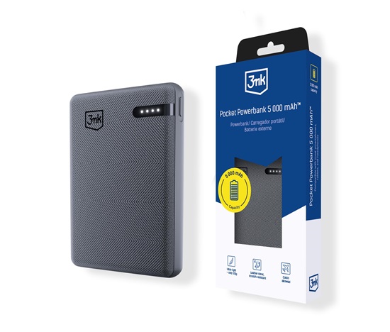 Díky kapacitě 5 000 mAh můžete svá zařízení nabíjet, aniž byste se museli bát, že se vám v rozhodujících okamžicích vybije baterie. Bez ohledu na to, zda cestujete, na schůzku nebo při každodenních povinnostech, 3mk Pocket Powerbank 5000 mAh™ vám vždy poskytne energii, když ji budete potřebovat. Díky tomu bude váš telefon, tablet nebo jiné zařízení vždy připraveno k použití.