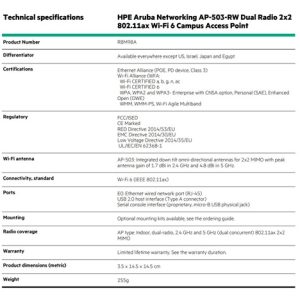 5x HPE Aruba Networking AP-503-RW Dual Radio 2×2:2 802.11ax Wi-Fi 6 Campus Access Point ( 5x R8M98A )