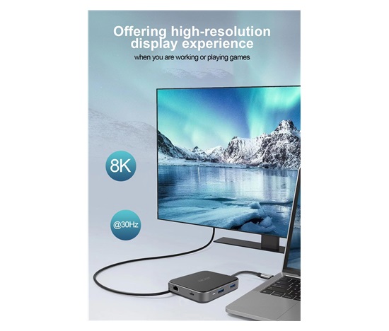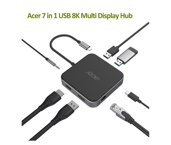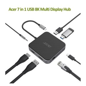 ACER 7in1 USB4 8K Multi Display hub: 1 x HDMI + 1 DP + 2 x USB3.2 + 1 x USB C + 1 x RJ45 + 1 x 3.5mm audio port