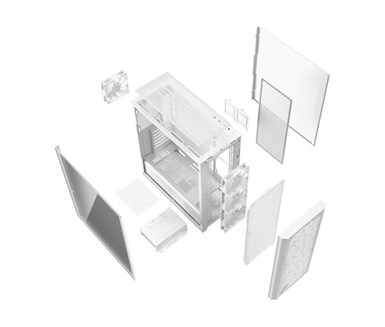 Provedení skříně:Midi Tower; Výkon zdroje (W):0; Barva skříně:Bílé; Počet pozic 3.5″ (HDD):2; Počet pozic 2.5″ (SSD):2; Bočnice:Prosklená; Podsvícení:bez podsvícení; Vybavení PC skříně:Přední Audio panel, Přední USB panel, Průhledná bočnice