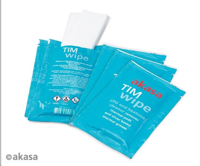 Utierka Akasa TIM Wipe sa dodáva navlhčená tekutinou TIM Clean, ktorá účinne emulguje a odstraňuje všetky tepelné rozhrania. Tekutina TIM Clean je bezpečné rozpúšťadlo na báze citrusov, ktoré nezanecháva zvyšky. Ideálne na čistenie základne CPU, GPU alebo chladiča na prípravu povrchu čipovej sady na nanesenie vysokoúčinnej tepelnej zmesi AK-455. Veľká veľkosť umožňuje čistenie procesora aj chladiča jedným utretím.