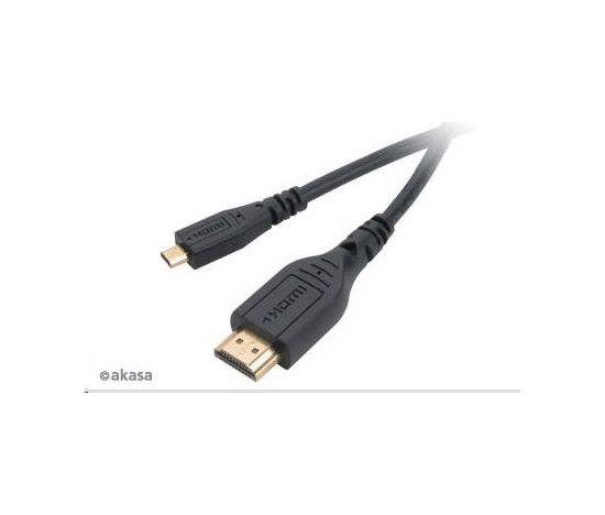 AKASA kabel HDMI Micro na HDMI, podpora Ethernet, 2K a 4K rozlišení, pozlacené konektory, 1,5m