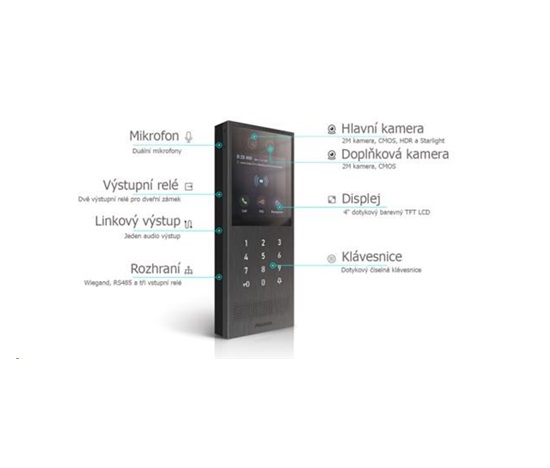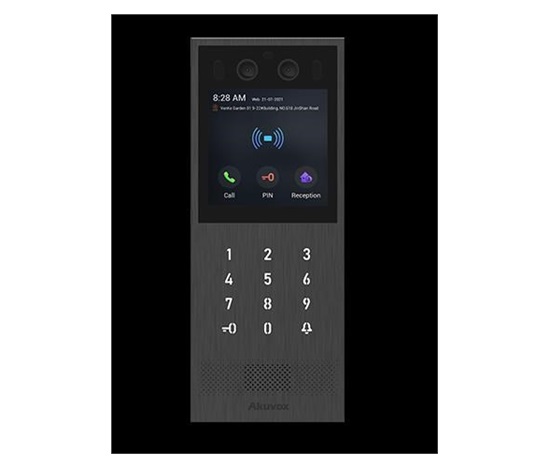 Intercom Akuvox X912 patří mezi nejluxusnější dveřní SIP telefony na světovém trhu. X912 je zaměřen na špičkové rezidenční a komerční projekty. Díky kompaktním rozměrům velikosti je ideální pro budovy s omezeným instalačním prostorem. Je vybaven 4″ kapacitním dotykovým IPS displejem, hardwarovou klávesnicí s haptickou odezvou, duální HDR a Starlight kamerou a s ultrarychlím rozpoznáváním obličeje do 0,6s.