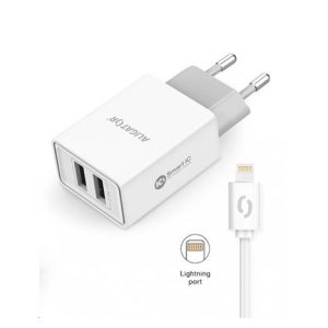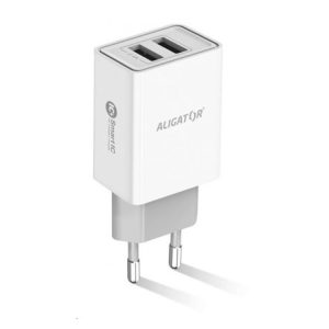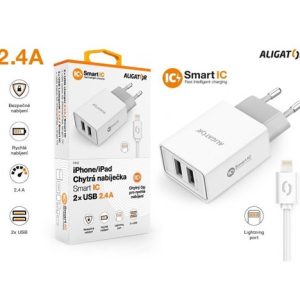 Chytrá síťová nabíječka ALIGATOR 2.4A, 2xUSB, smart IC, bílá, kabel pro iPhone/iPad 2A