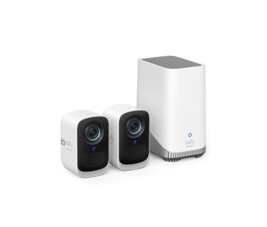 Eufy Eufycam 3C 2-cam kit, je set nové centrální jednotky Home Base 3 a dvou 4K bezdrátových bezpečnostních kamer s integrovaným solárním panelem, rozpoznáváním obličeje AI, s rozšiřitelným místním úložištěm, LED reflektorem a barevným nočním viděním.