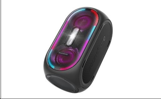 Soundcore Rave + – výkonný přenosný reproduktor 160W, Bluetooth 5.0, párování dvou zařízení, výdrž až 24h, IPX4, mikrofonní vstup, Powerbanka, SoundCore App, LighShow, váha 9.8kg.