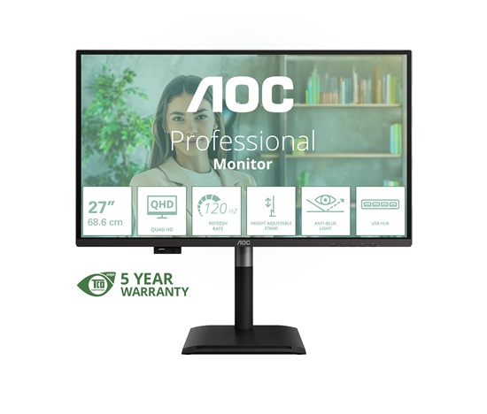 AOC MT 27″ Q27P4U – 2560×1440,IPS,120Hz,2xHDMI,1xDP,USBhub,Repro,Pivot