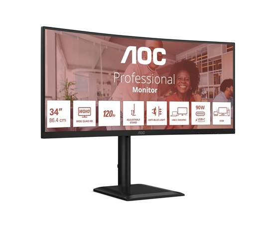 AOC MT 34″ CU34E4CV – 3440×1440,VA,120Hz,HDR10,2xHDMI,DP,USBhub,USB-C,RJ45,repro,Zakřivený