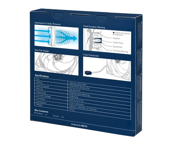 - OPTIMALIZOVANÉ PRE STATICKÝ TLAK – Pri vývoji nového modelu P14 Silent sa kládol osobitný dôraz na sústredený prúd vzduchu, a tým na vysoký statický tlak. Ventilátor zaručuje mimoriadne účinné chladenie aj pri zvýšenom odpore vzduchu. Preto je P14 Silent obzvlášť vhodný na použitie na chladičoch a radiátoroch.