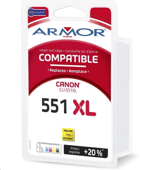 Úvod ARMOR cartridge pro CANON MG5450, 6350, Yellow 13 ml, (CLI551YXL)