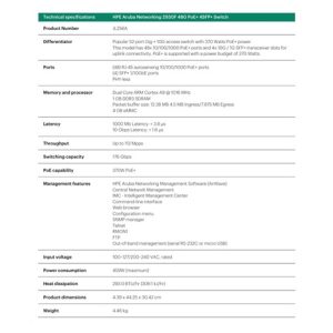 Provedení:Rack mounted 19″; Technologie:Gigabit Ethernet + možnost 10 GbE portů; Maximální počet portů:52; Maximální počet portů:52; Management:SNMP/RMON; Vlastnosti switche:Funkce POE po portech, Rozšiřitelnost