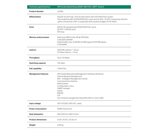 Aruba 2930F 48G PoE+ 4SFP+ Swch RENEW JL256A