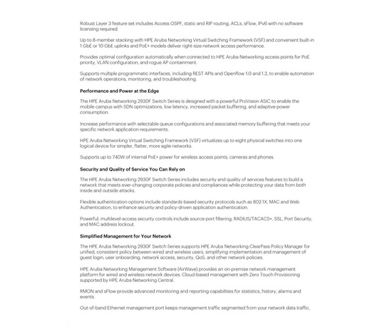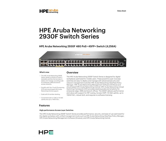 Úvod IT Síťové prvky Switche Aruba 2930F 48G PoE+ 4SFP+ Swch RENEW JL256A