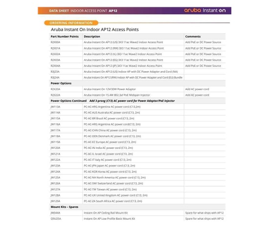 1 x Aruba Instant On AP12 Quick Start guide