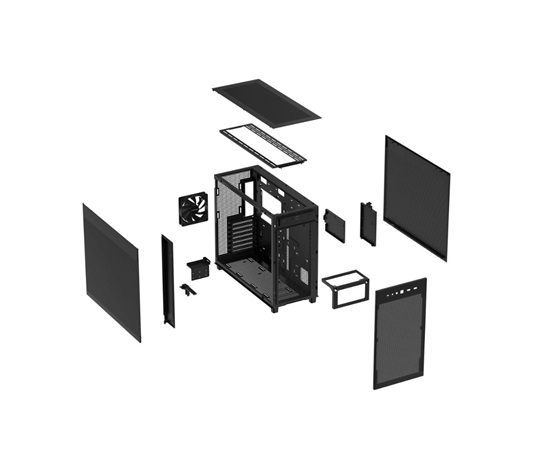 • Kompaktní velikost s maximální kapacitou: 44litrová skříň podporuje grafické karty až do délky 360 mm, radiátory až 360 mm (maximální tloušťka 60 mm) a ATX zdroje až do délky 180 mm