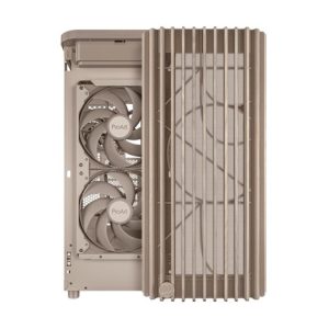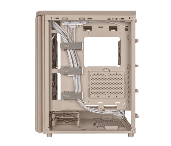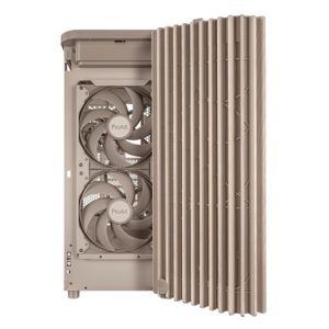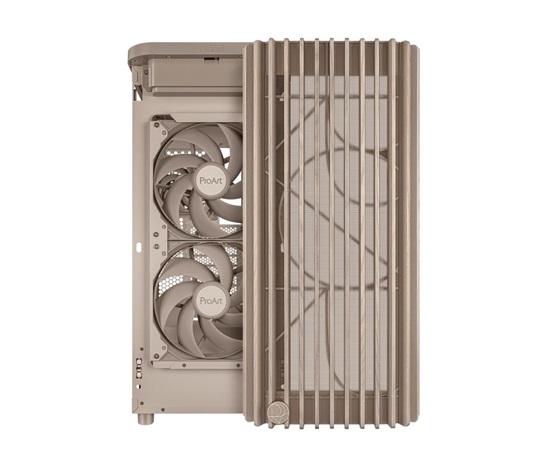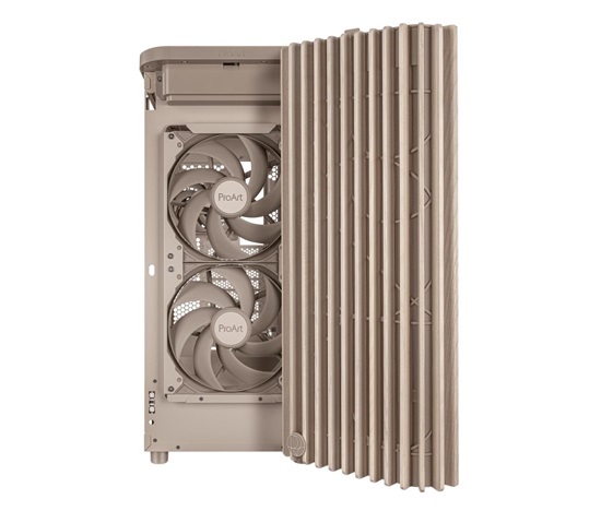 ProArt PA401 Wood Edition Beige má dřevěný přední panel, který vytváří výrazný a elegantní vzhled a zároveň podporuje udržitelnost. Použité dřevo je certifikováno Forest Stewardship Council (FSC) a je dokončeno šestimístným procesem úpravy. Skříň také nabízí optimální vestavěné chlazení se dvěma 160mm předními ventilátory a jedním 120mm zadním ventilátorem, spolu s integrovaným hubem pro ventilátory, který umožňuje optimální proudění vzduchu.