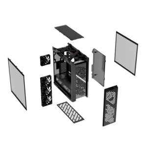 • Připraveno pro DIY zážitek: Sestavení PC je snadné díky podpoře základních desek EATX a grafických karet o délce až 450 mm, plus svorkám pro grafické karty a odnímatelnému držáku zadního zdroje.