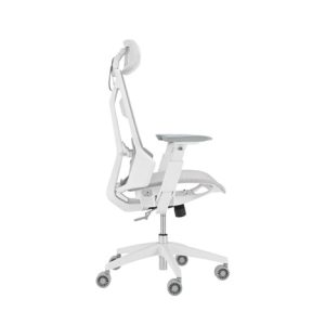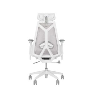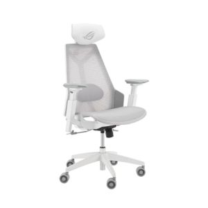 Herní židle ROG Destrier Core ergo s futuristickou estetikou, všestranným nastavením sedadla pro dokonalé držení těla, mobilní herní opěrky rukou a vyrobená z odolného polyamidového nylonu a prodyšné síťoviny pro pohodlné herní maratony.