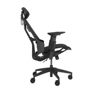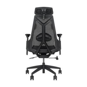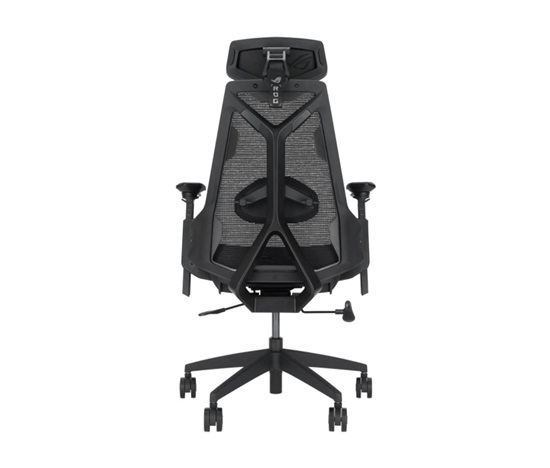 Herní židle ROG Destrier Core ergo s futuristickou estetikou, všestranným nastavením sedadla pro dokonalé držení těla, mobilní herní opěrky rukou a vyrobená z odolného polyamidového nylonu a prodyšné síťoviny pro pohodlné herní maratony.