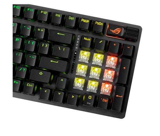 - Mechanické přepínače ROG NX Snow s možností výměny za provozu V2: Podporují více profilů kláves a poskytují jemnější akustiku a jemnější pocit při psaní
