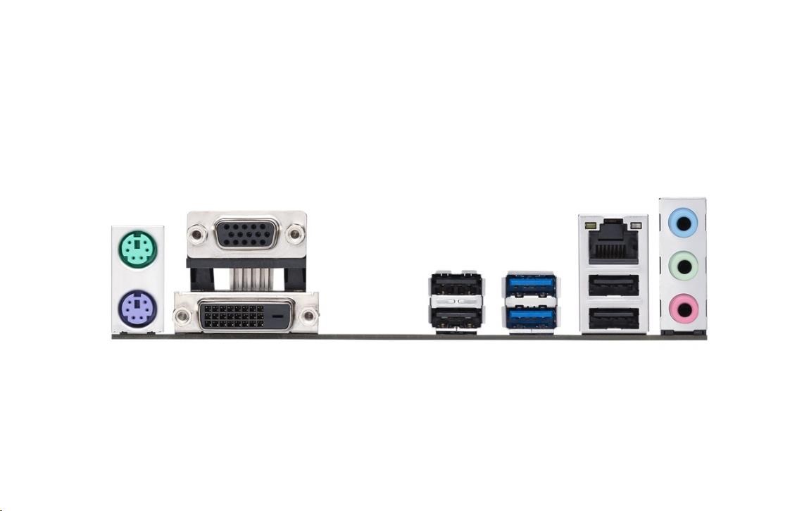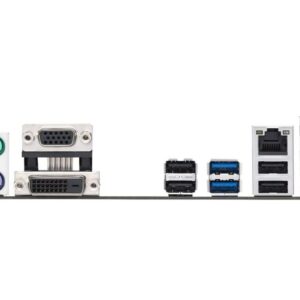 | Back I/O Ports | 1 x PS/2 keyboard (purple) 1 x PS/2 mouse (green) 1 x DVI-D 1 x D-Sub 1 x LAN (RJ45) port(s) 2 x USB 3.2 Gen 1 Type-A 4 x USB 2.0 3 x Audio jack(s) |