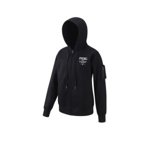 ROG Pixel Game Jacket has a large, adjustable hood with room for a large headset. It’s made out of soft, heavyweight French terry fleece for warmth. It features retro-inspired printed 8-bit pixel graphics and a front zip.