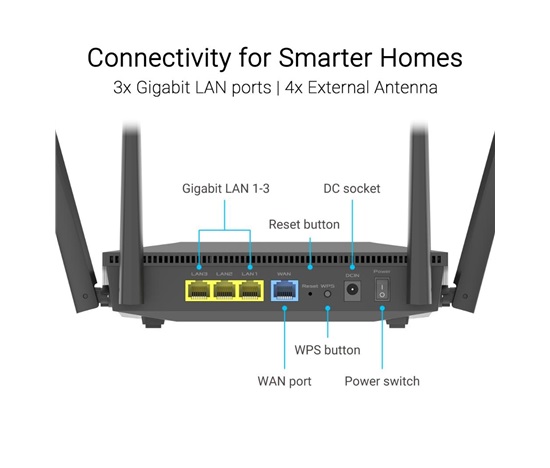 | Konektory | 1x WAN RJ45 3x LAN RJ45 |