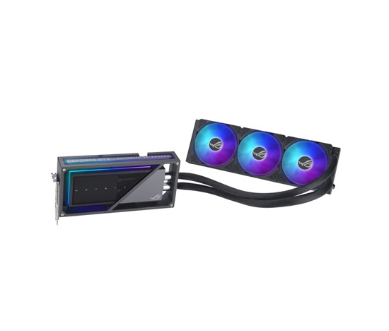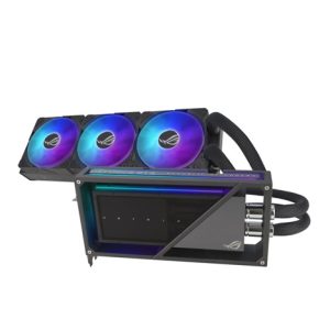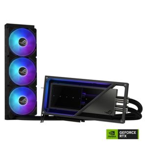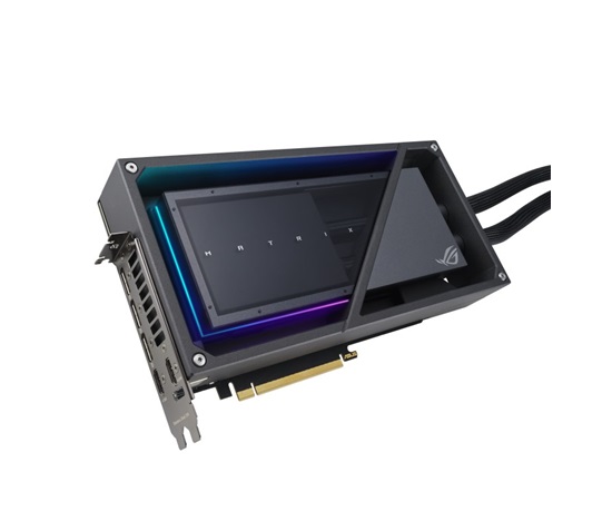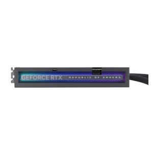Matrix GeForce RTX 4090 se vyznačuje designem kovového rámu s polodutou komorou, kde jsou hlavní coldplate, PCB a plášť čerpadla chráněny větším hliníkovým tělem. Světelné efekty Aura Sync se spárují s tímto výrazně minimalistickým exoskeletem a poskytují moderní styl, který nikde jinde nenajdete.