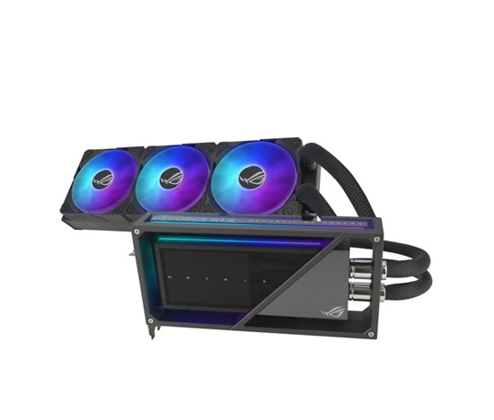 ROG Matrix GeForce RTX™ 4090 poskytuje absolutní špičkový výkon při zachování tichého tepelného provozu díky tekuté kovové tepelné směsi na matrici GPU, prémiovému 360mm AIO chladiči a úžasnému dutému kovovému rámu.