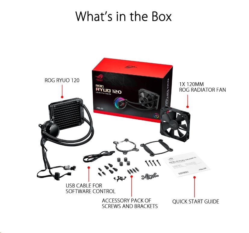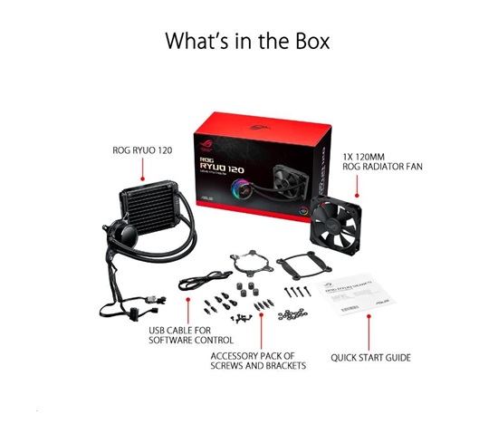 Obsah balenia Chladič kvapaliny ROG RYUO 120
