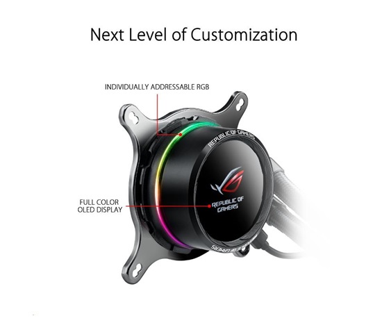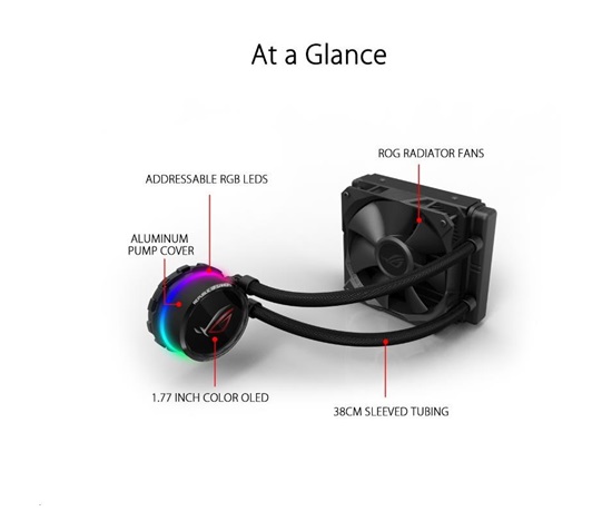 Chladič CPU ROG Ryuo 120 all-in-one s farebným displejom OLED, technológiou Aura Sync RGB a 120 mm ventilátorom chladiča ROG