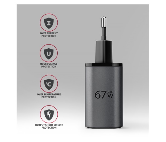 Kompaktní velikost a vysoký výkon je daný využitím nové GaN technologie. Použité součástky s Nitridem Galia pracují s vysokou účinností, což umožňuje dosahovat vysokých výkonů při malé velikosti. Nabíječka je vybavena výstupem Power Delivery 3.0 / Quick Charge 4+ USB typu C a Quick Charge 3.0 USB typu A, díky čemuž umožňuje rychlé nabíjení nejen smartphonů a tabletů, ale i notebooků.