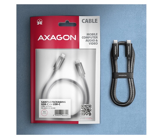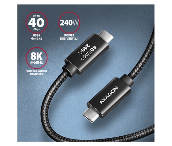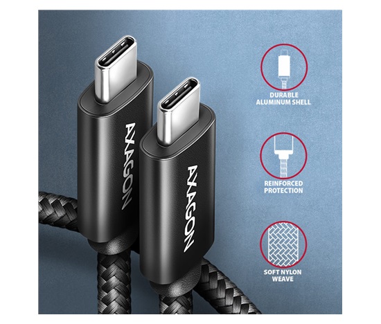 AXAGON BUCM4X-CM05AB NewGEN+ kabel USB-C <-> USB-C, 0.5m, USB4 Gen 3×2, PD 240W 5A, 8K HD, ALU, oplet, černý