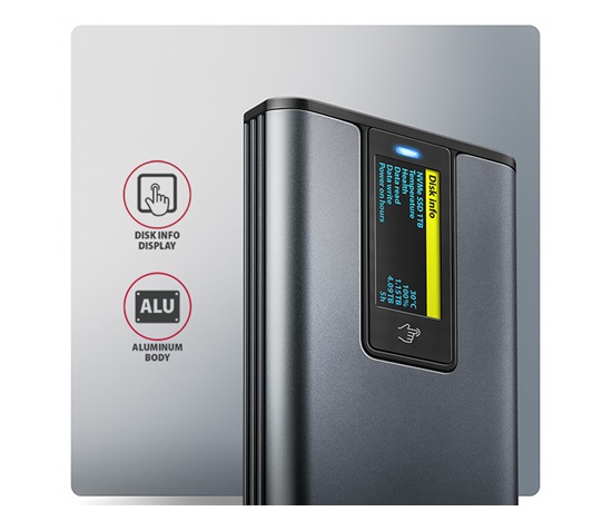 • Vyšší povrchová teplota boxu není závadou – díky hliníkovému tělu je teplo generované provozem disku lépe odváděno a předáváno do okolí.