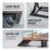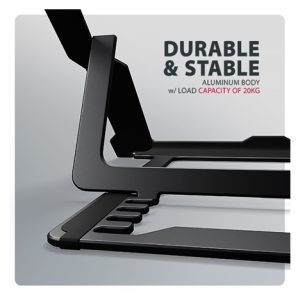 Podstavec je vyroben z hliníkových odlitků garantujících dlouhou životnost a spolehlivost. Díky protiskluzové úpravě se nemusíte obávat nežádoucích pohybů – vaše zařízení zůstane pevně na svém místě, a to bez poškození povrchu notebooku či podložky. Tyto pečlivě navržené vlastnosti zaručují perfektní stabilitu pro váš notebook, tablet nebo dokonce oblíbenou knihu, což vám poskytne klid a pohodlí při každodenním používání.