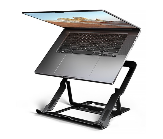 Stojan lze snadno složit do kompaktních rozměrů, což umožňuje pohodlné přenášení kamkoli potřebujete. Jeho elegantní design v černé barvě nejen stylově doplní váš pracovní stůl, ale také přináší praktické funkce, které oceníte při každodenním používání.