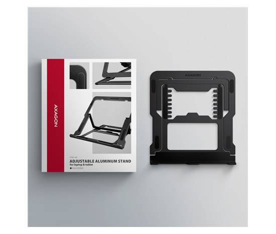 AXAGON STND-LAB, hliníkový stojan pro notebooky 10″-17.3″, nastavitelná výška, černý