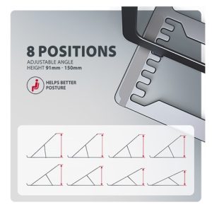 Velkou výhodou je možnost nastavení až osmi poloh. Díky tomu můžete notebook zvednout do výšky od 91 do 150 mm. Tím získáte další pracovní plochu ve správné úrovni očí, což výrazně zlepšuje ergonomii a pohodlí při práci, a zároveň zvyšuje vaši produktivitu.