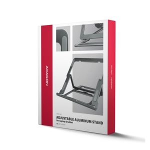 AXAGON STND-LAG, hliníkový stojan pro notebooky 10″-17.3″, nastavitelná výška, šedý